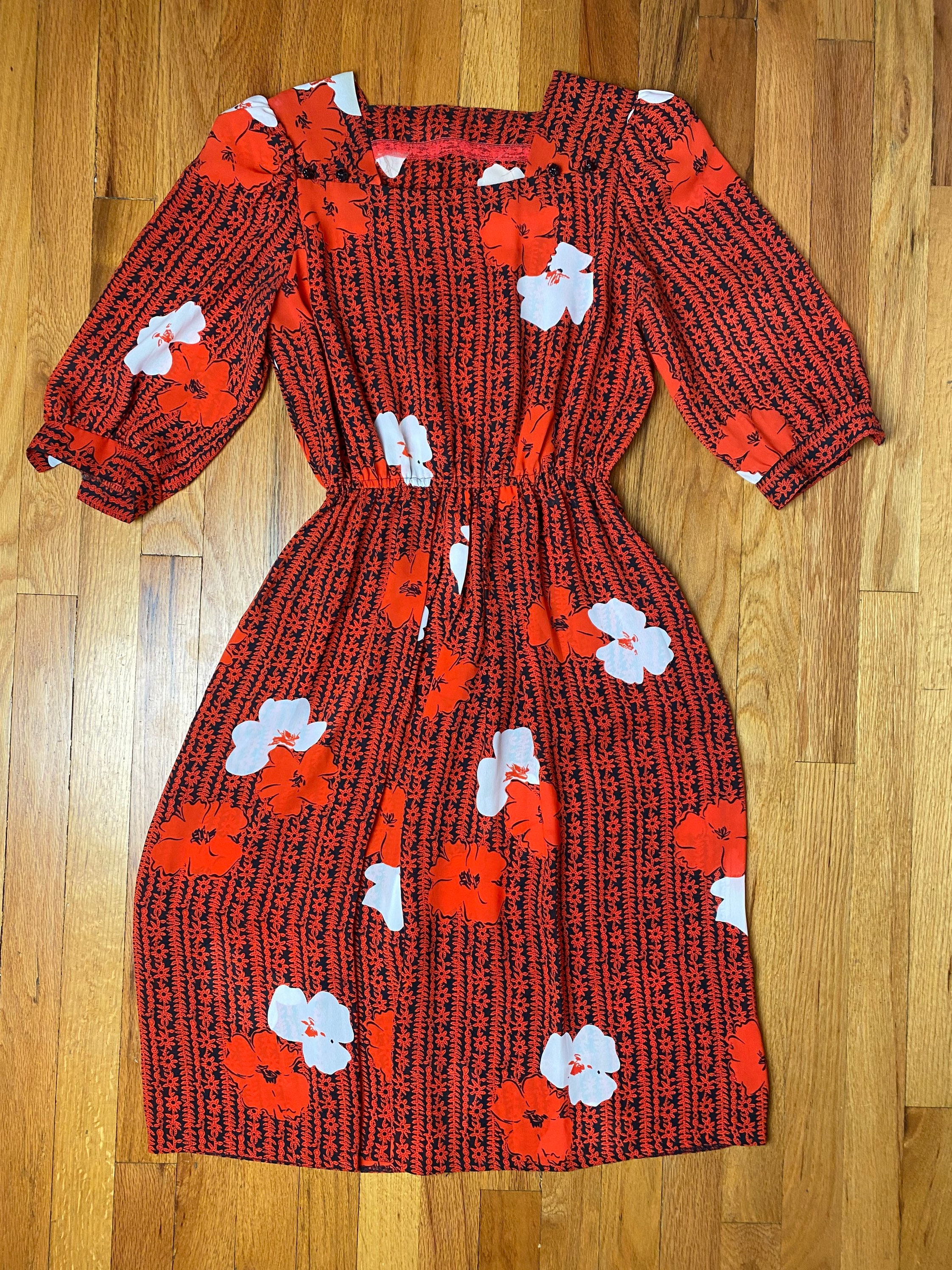 Buy 80s Pretty Midi Dress Striking Red Silky Black White Online In India Etsy